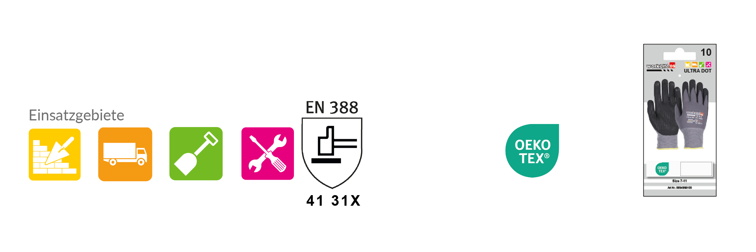 Der WorkLife Ultra Dot wird aus einem 15 gauge Nylonfeinstrick und mit einer Nitril Foam Beschichtung hergestellt. Der Handrücken ist für eine erhöhte Flexibilität frei. Genoppte Innenhand für mehr Griffigkeit. Zertifiziert nach Öko Tex 100, um sicherzustellen, dass keine schädlichen Stoffe verwendet werden. Ein Handschuh, der jeden Anspruch an Schutz und Komfort erfüllt.